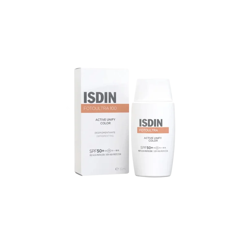 L’écran solaire ISDIN Ecran Active Unify COLOR SPF 50+50ml est un ecran solaire à l’effet dépigmentant qui éclaircit et unifie le teint. Dissimule les imperfections et donne un effet bonne mine aux peaux claires à medium.