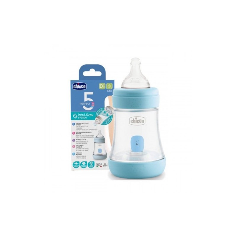 Le Chicco Biberon PERFECT 5 Bleu Silicone 0M+ 150 ml est spécialement conçu pour répondre aux besoins uniques de chaque bébé dès la naissance. Grâce à sa technologie innovante intui-flow®, il s’adapte naturellement au rythme de succion de bébé, favorisant une alimentation plus détendue et physiologique.