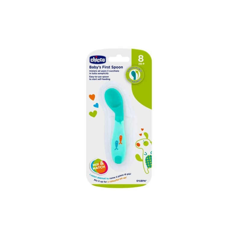 CHICCO PREMIERE CUILLERE 8M+ est spécialement conçue pour accompagner votre bébé dès ses premiers apprentissages alimentaires, dès l’âge de 8 mois. Son bout courbé et souple facilite la prise d’aliments tout en respectant la sensibilité des gencives fragiles de votre enfant. Cette conception ergonomique aide bébé à manger seul en toute sécurité et confort.
