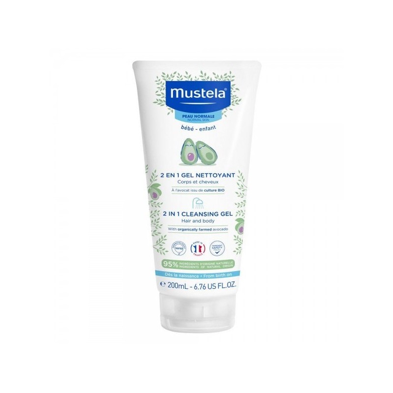 MUSTELA GEL NETTOYANT 2 EN 1 CHEVEUX ET CORPS 200ml nettoie efficacement le corps et les cheveux de bébé en un seul geste. Il est idéal dès la naissance, même pour les nouveau-nés sortis de néonatologie. Grâce à sa formule douce, il respecte la peau délicate et le cuir chevelu fragile des tout-petits.